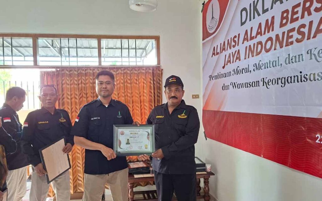 Acara Diklat Aliansi Alam Bersatu Jaya Indonesia ditutup dengan penyerahan sertifikat kepada seluruh peserta sebagai bentuk apresiasi atas partisipasi dan kedisiplinan selama mengikuti kegiatan.